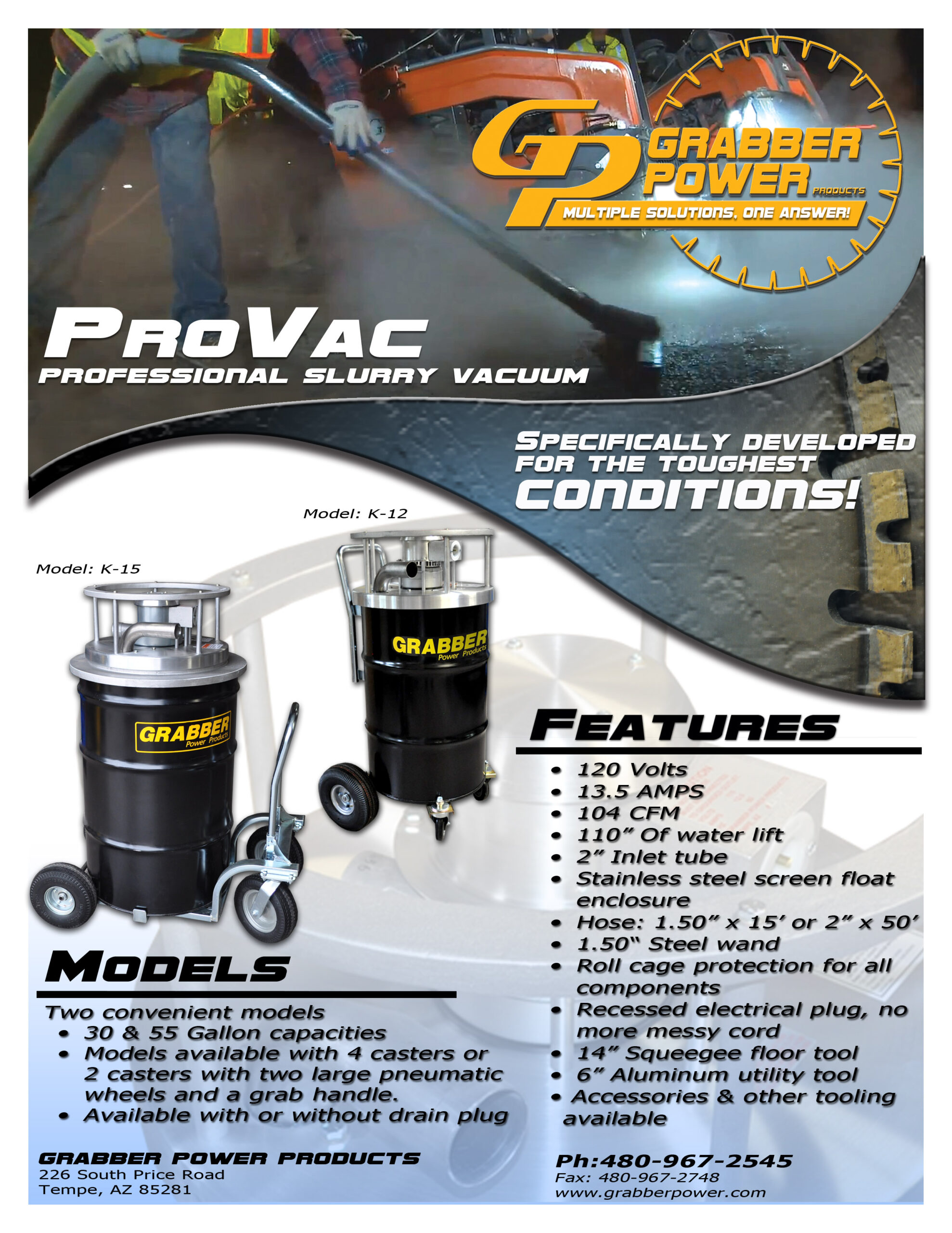 Grabber wet vacuums are purpose-built for the concrete cutting industry, delivering unmatched durability on the toughest jobsites. Featuring proven motors, heavy-duty steel drums with epoxy linings, and slurry-ready wheels, the ProVac™ is built to handle real-world abuse without failure. Designed by concrete cutting pros, these vacuums aren’t off-the-shelf equipment—they’re made to last when performance truly matters.