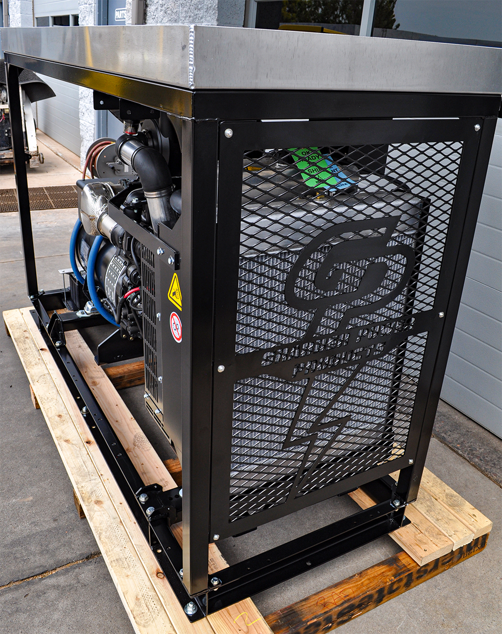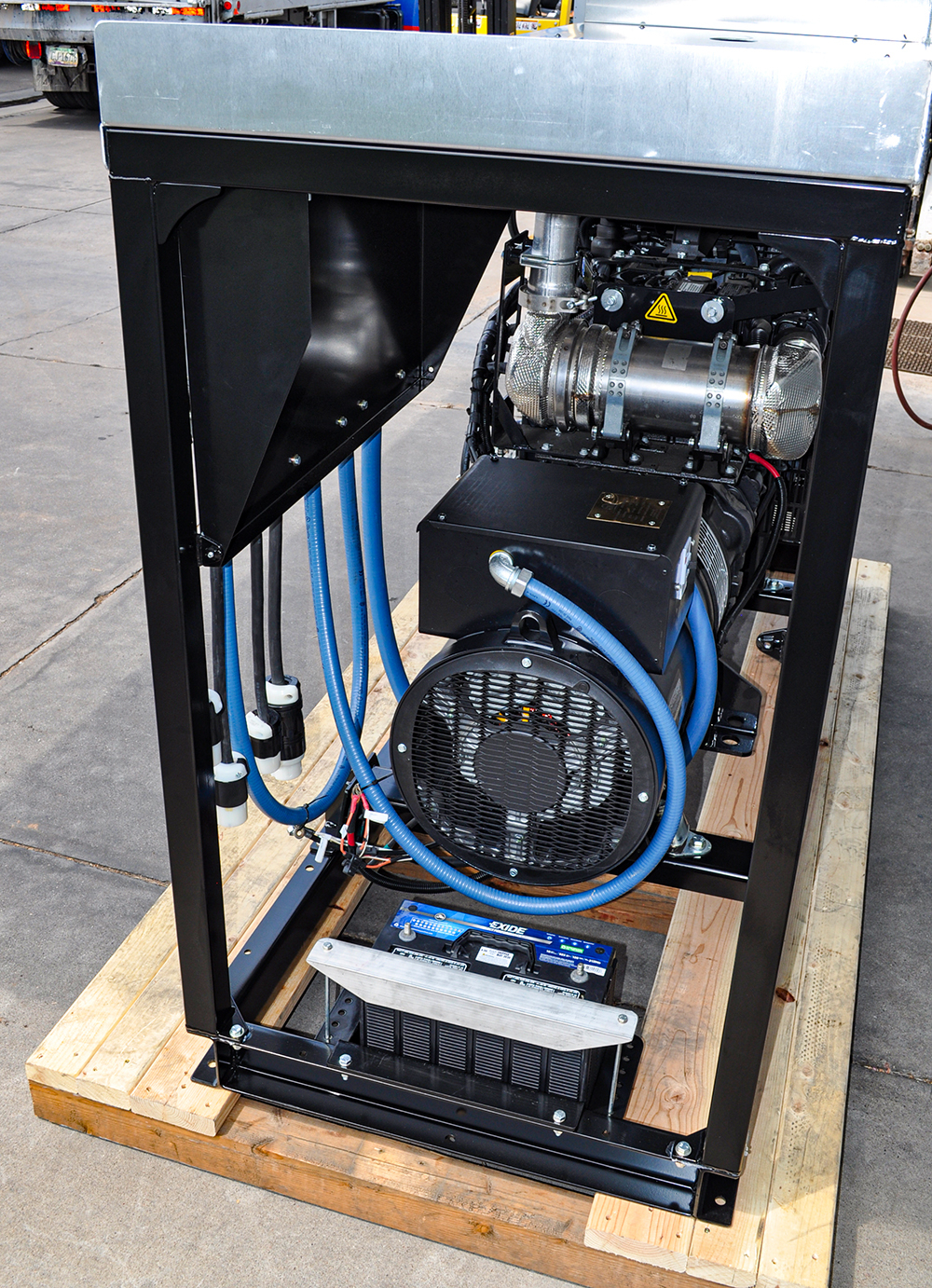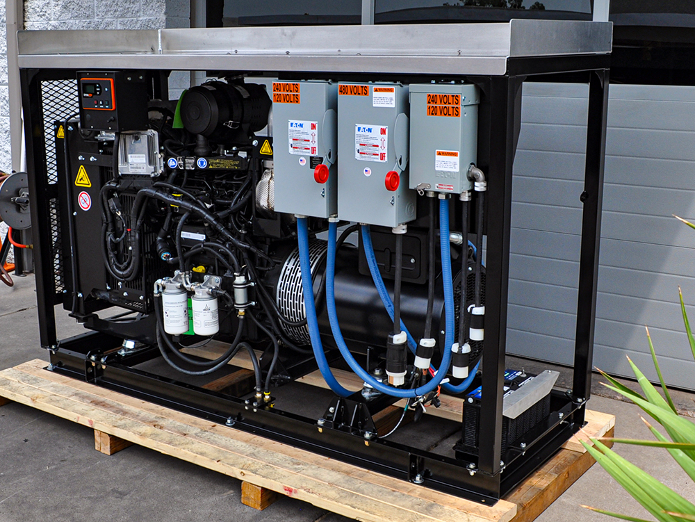 Our self-contained generators are perfect for truck and trailer applications. The frames are made from square steel tubing and the sub-base fuel takes are made from 6″ steel channel. The self-contained generators also have a convenient forklift pockets and welded picking points for easy access of removal, install, and transportation to another location if necessary. Other features include: