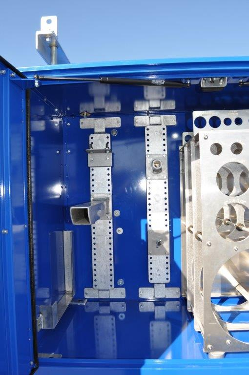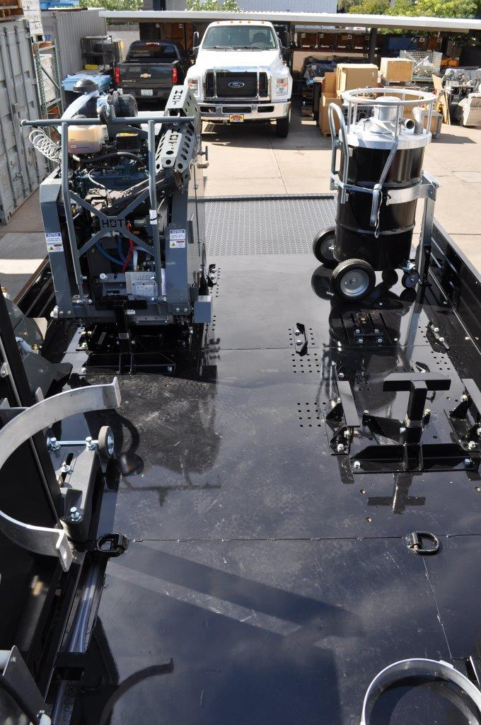 Reinforced steel substructure built to support generators, water tanks, and concrete cutting equipment for heavy, daily use