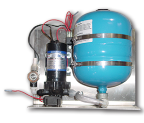 Features include a 2.1 gallon tank, 12 volt water pump, strainer & mounting hardware included &