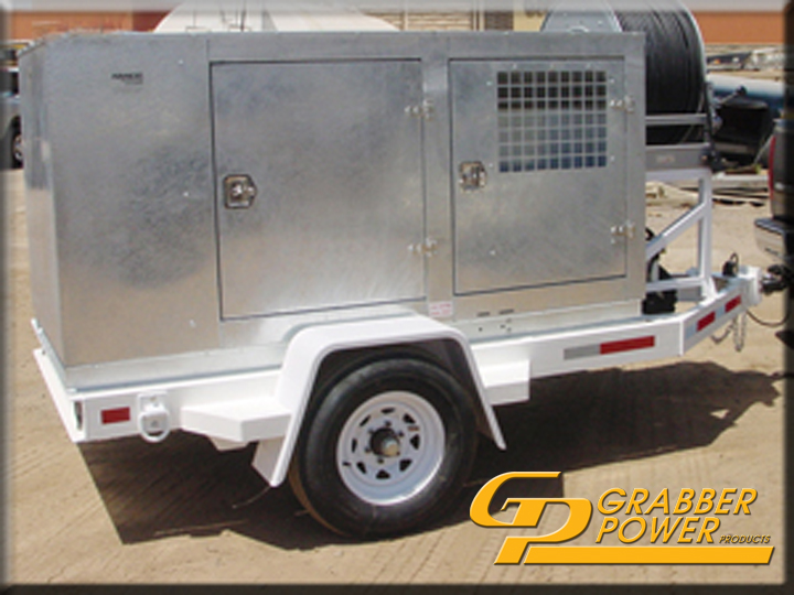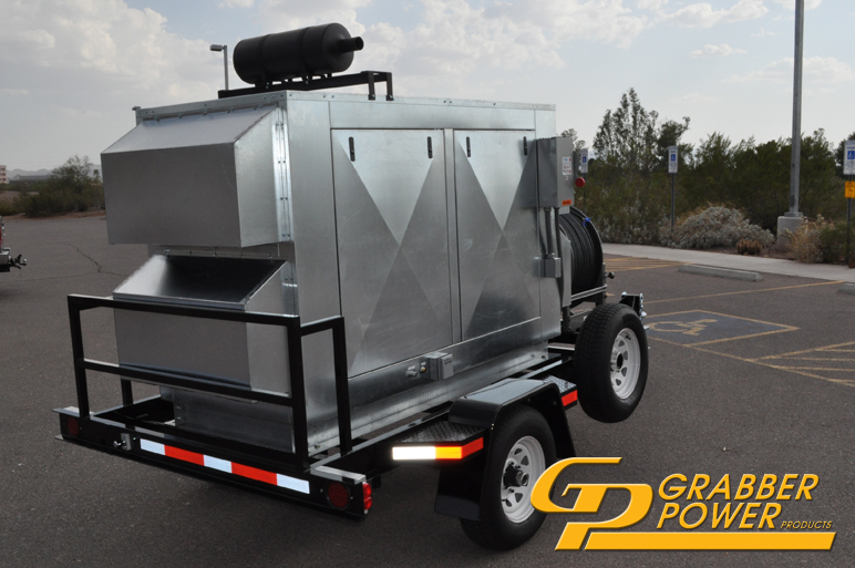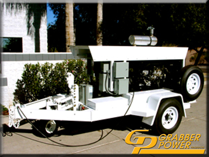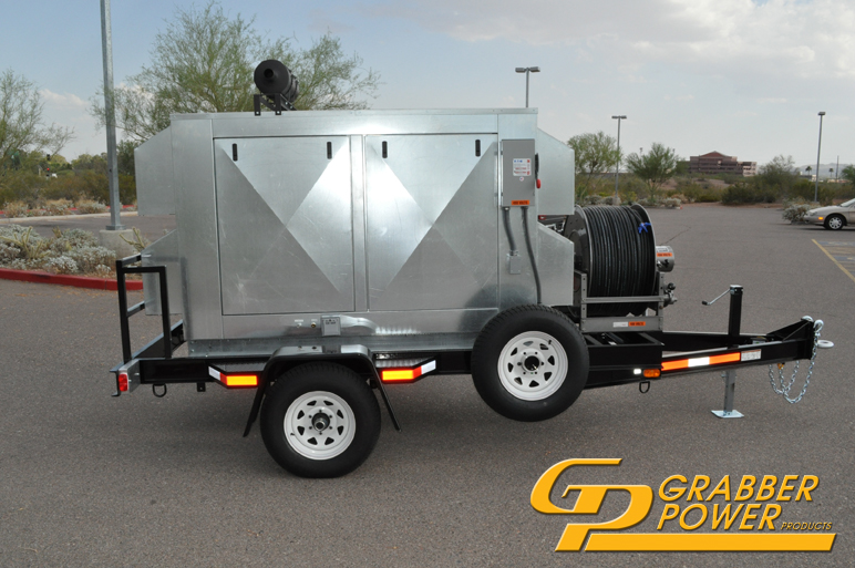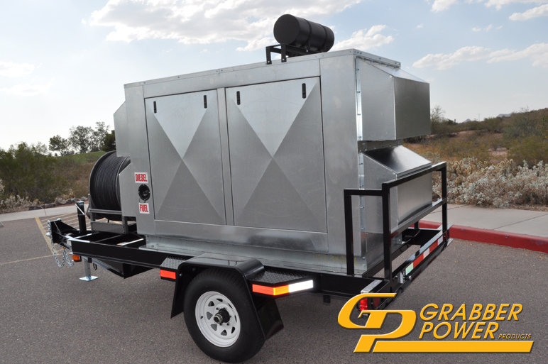 Grabber Power's trailer mounted diesel powered generators are built to hold up in the toughest environments. We offer both ultra quiet sound attenuated enclosures as well as self contained options. The trailers can be custom built to fit your needs and include an array of accessories. Are trailers, generator frames, base, and enclosures are all built from steel for durability and protection of theft and inclement wheather conditions.